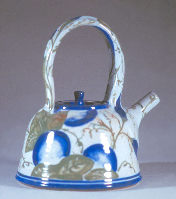 When we first started our business, we were looking for some way to make our work be unique and stand out from the rest of the potters we knew. At that time we saw very little decorated pottery at retail art fairs. It was through combining the brushwork inspired by Oriental pottery and Sherrie's love of flowers that our floral line has evolved. Most of the work is wheel thrown and high fired. Tom does most of the throwing and Sherrie the decorating.