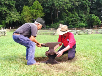 The dramatic anvil shoot is the highlight of the event. Several times during the day, excitement builds as crowds gather to watch as gunpowder is packed under the anvil and ignited. With a loud boom, the hunk of iron bursts from a cloud of smoke, catapulting as high as the treetops—some 125 feet into the air. The earth literally shakes, and the deafening boom, it is said, can be heard as far away as 15 miles. Anvil shoots will take place periodically throughout the day. This year, an expanded slate of activities is scheduled. Musical performances will include traditional and bluegrass bands, dulcimer playing in the Hall of Fame, and informal “porch picking” at several log cabins. An old-time “brush arbor” will host church services and hymn singing. Mountain activities will be demonstrated, including rail-splitting, cross-cut sawing, basket-making, whittling, corn grinding, sheep herding, quilting, and blacksmithing—and the old-time circular sawmill will be in operation. Visitors can match their skills at the game of Checkers with master player Robert Butler. “Betsy Ross” will tell the story of the nation’s first flag while sewing a replica. Patriotic ceremonies, led by the Sons of the Revolution, will include the National Bell Ringing Ceremony at 2 p.m. in conjunction with the national event. The Liberty Pole Raising will re-enact Revolutionary War protests against British rule. There’ll be old-fashioned cake walks, with proceeds benefiting the Museum’s newly established Endowment Fund. Tasty traditional treats will be available, including Tennessee barbeque and hot fruit cobblers baked over the coals in Dutch ovens, homemade ice cream, freshly brewed sassafras tea, roasted corn on the cob, freshly squeezed lemonade, fried green tomatoes, and cool slabs of watermelon. Visitors may also tour the extensive village-farm complex, with dozens of historic log structures, display buildings containing tens of thousands of authentic Appalachian artifacts, gardens surrounded by split rail fences, and a variety of farm animals in a traditional farm setting. The Hall of Fame offers a portrait of the Appalachian people, both famous and ordinary—and in air-conditioned comfort. In the entrance building are a large craft and gift shop containing handiwork from area artisans, and a restaurant featuring fresh-from-the-garden produce and mouthwatering home-style desserts. Throughout the summer, the Museum is open daily from 8:30 a.m. to 7 p.m., with live old-time music played daily for visitors. Traditional gardens will be producing their bounty of fresh tomatoes, peppers, squash, herbs, greens, and other vegetables. Other seasonal demonstrations are offered periodically; call for events scheduled on specific days. |